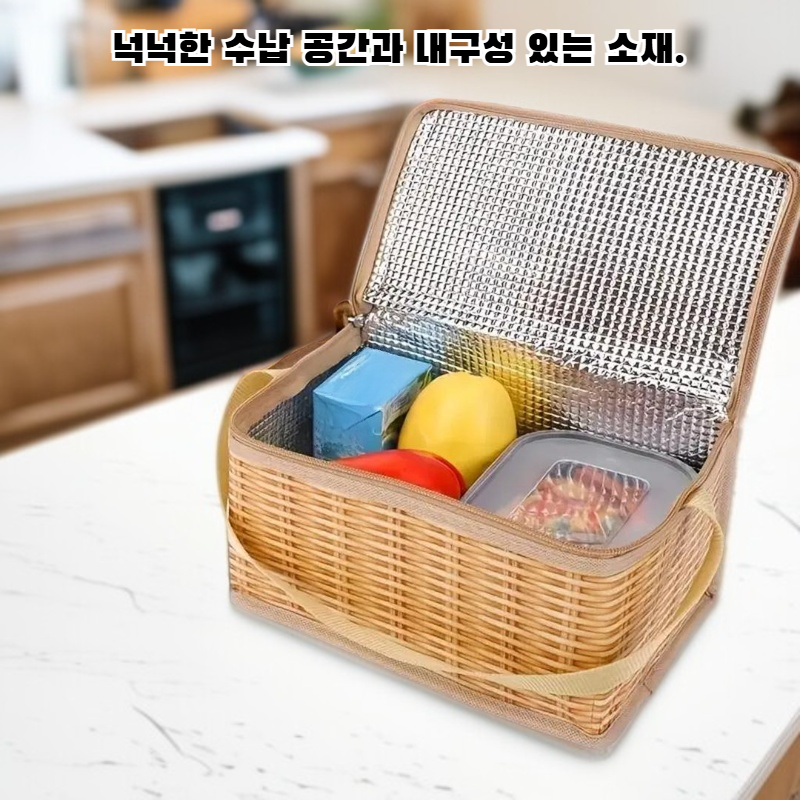● 뛰어난 보온·보냉 기능으로 음식의 신선함과 온도를 장시간 유지해 언제 어디서나 따뜻한 식사를 즐길 수 있습니다. ● 넉넉한 수납 공간과 내구성 좋은 소재로 다양한 도시락 용기와 간식을 한 번에 담아 외출 시에도 편리하게 사용 가능합니다. ● 생활 방수 원단과 고급스러운 디자인으로 오염 걱정 없이 깔끔하게 관리할 수 있으며, 스타일리시한 포인트까지 더해줍니다. ● 가볍고 휴대가 간편한 손잡이와 어깨끈이 있어 출근, 등교, 소풍 등 다양한 상황에 실용적으로 활용할 수 있습니다. ● 환경을 생각한 친환경 소재 사용으로 안전하게 사용할 수 있으며, 튼튼한 마감 처리로 오랫동안 변형 없이 사용할 수 있습니다.