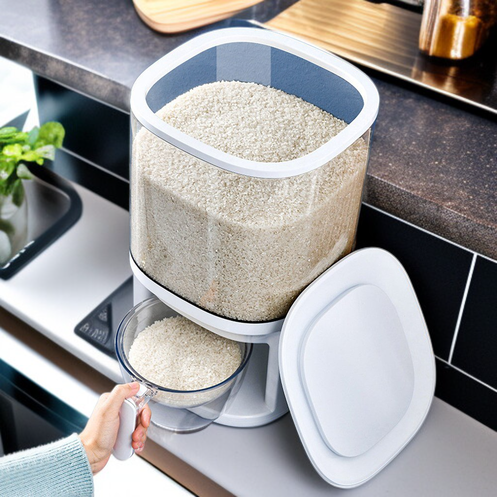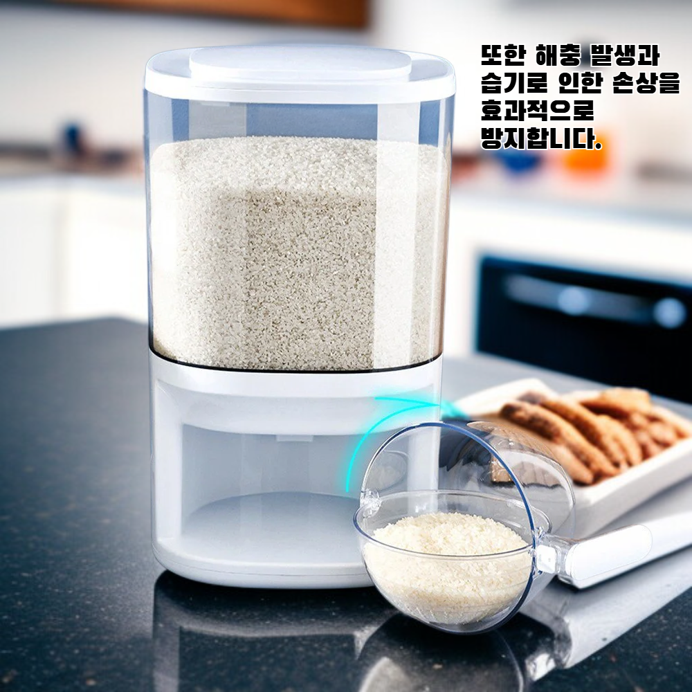● 자동 계량 기능으로 쌀을 원하는 양만큼 손쉽게 누름 한 번에 정확하게 담을 수 있어 주방이 더욱 깔끔해집니다. ● 위생적인 밀폐 구조로 쌀의 신선함과 맛을 오래도록 유지하며, 벌레나 습기로부터 안전하게 보관할 수 있습니다. ● 투명한 창으로 남은 쌀의 양을 한눈에 확인할 수 있어 언제든지 손쉽게 쌀을 보충할 수 있습니다. ● 인체공학적 디자인과 간편한 누름식 방식으로 남녀노소 누구나 편리하게 사용할 수 있어 사용 만족도가 높습니다. ● 공간 절약형 슬림 디자인으로 주방 어디에 두어도 잘 어울리며, 쌀뿐만 아니라 다양한 곡물 보관에도 활용 가능합니다.